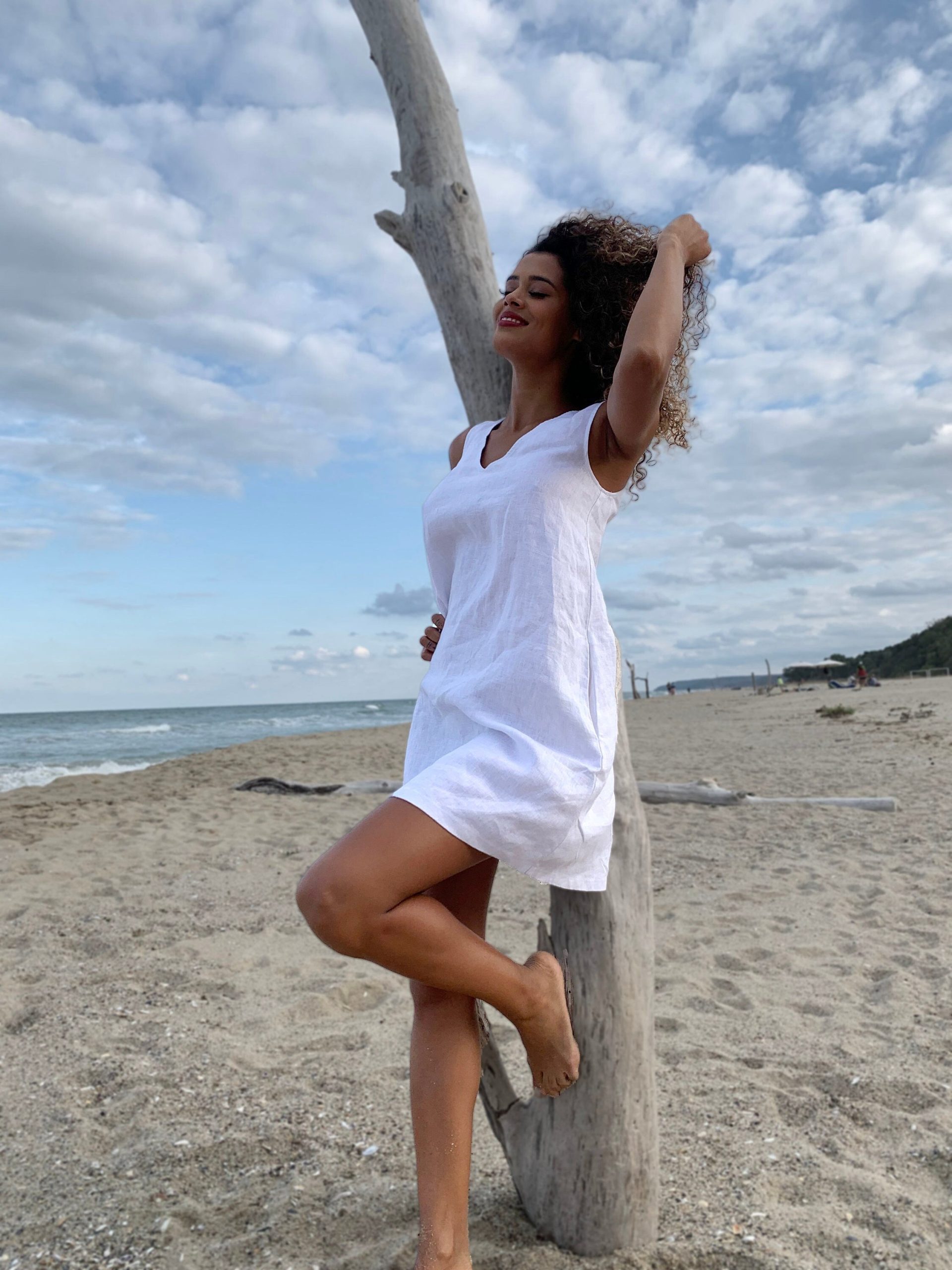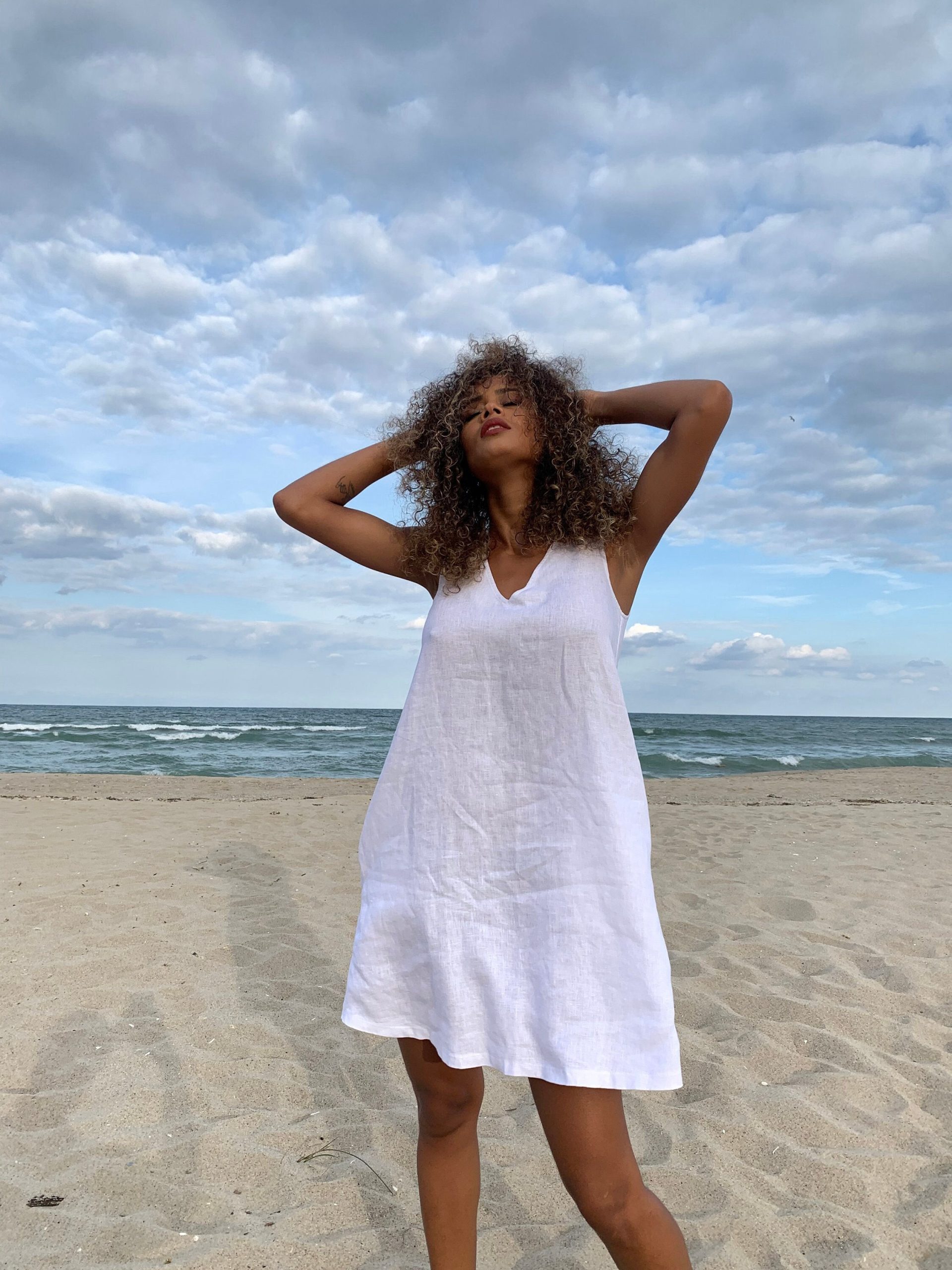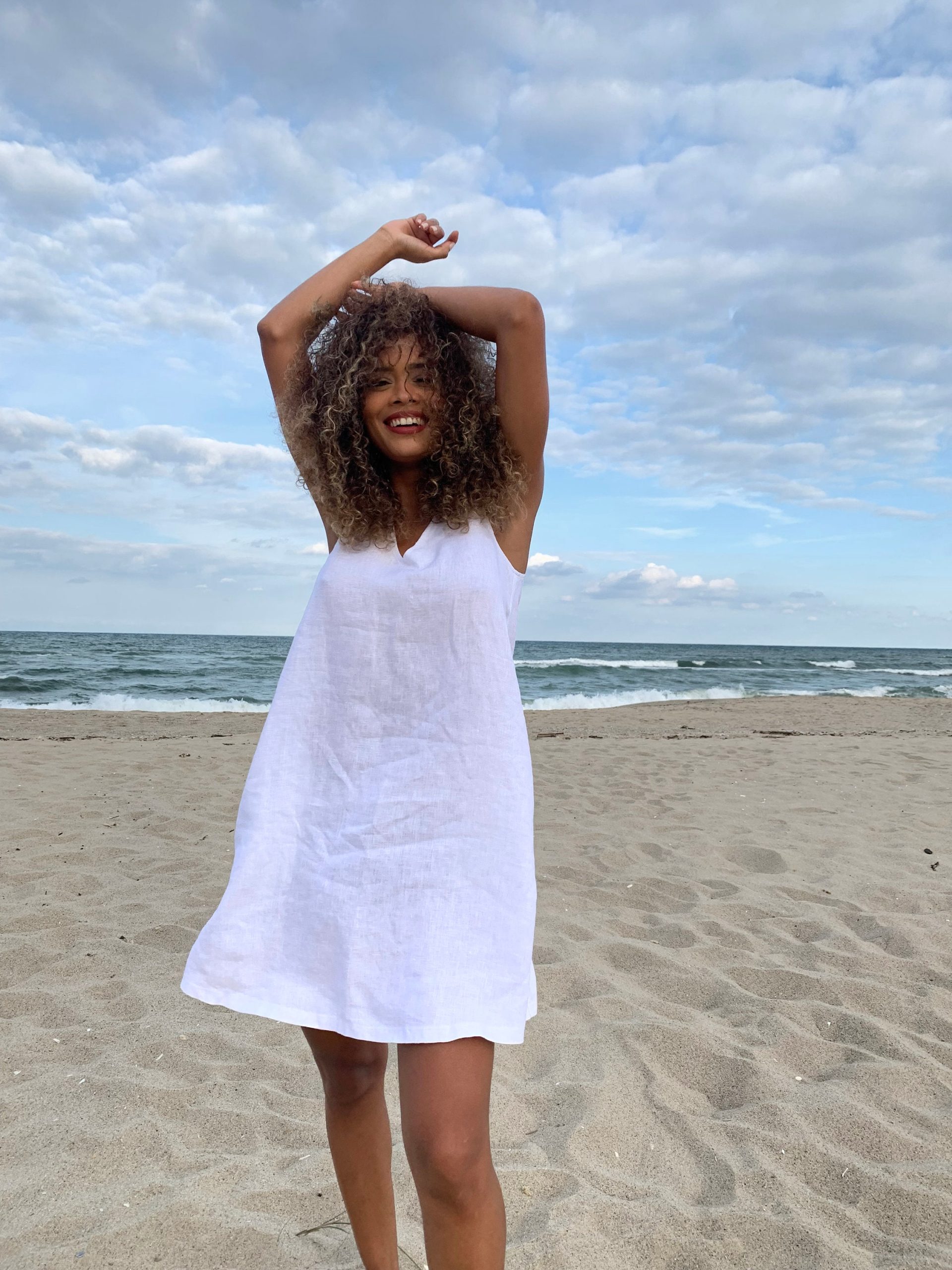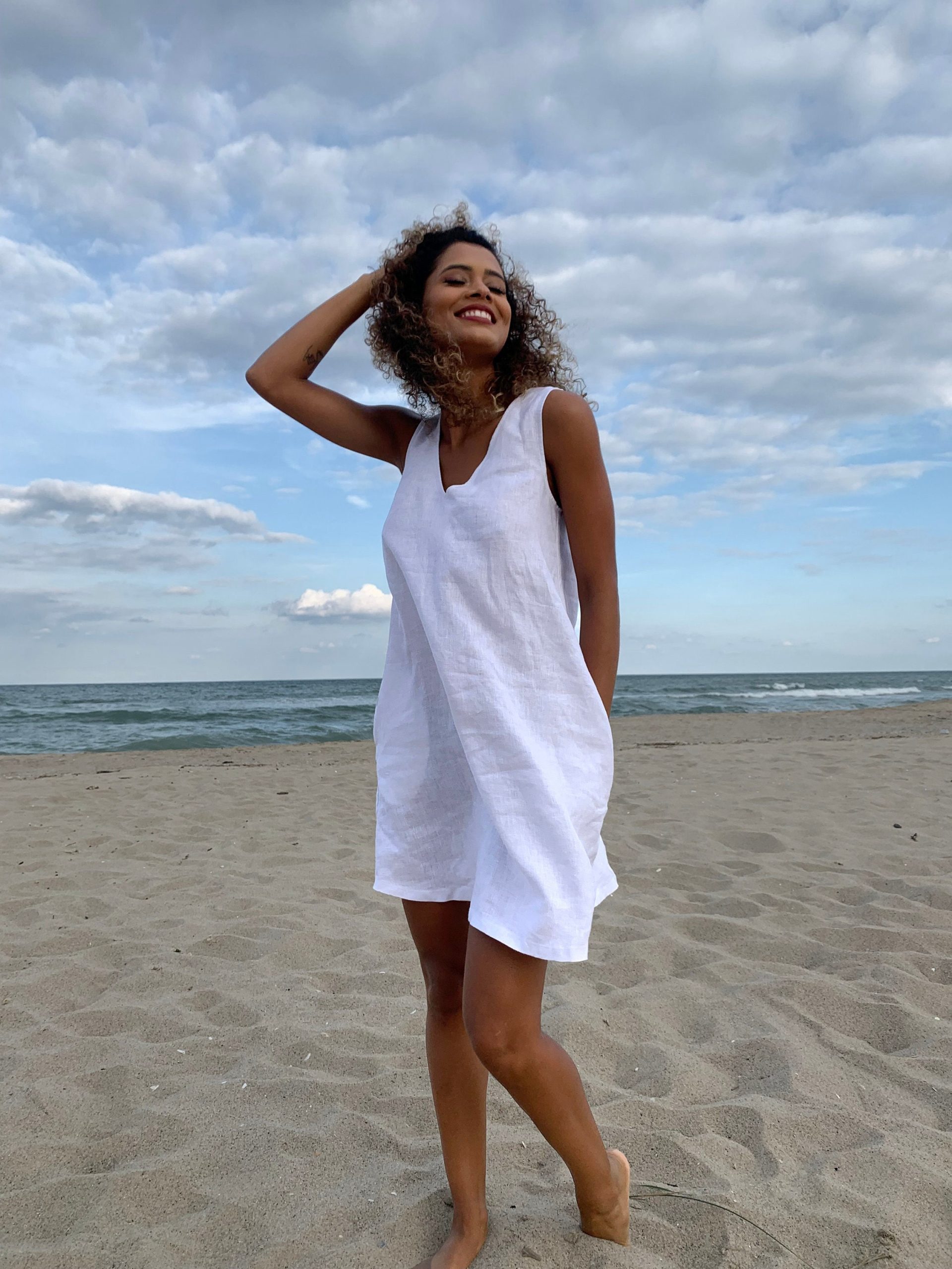 Minimalist White Linen Tunic Dress Sleeveless Summer Beach