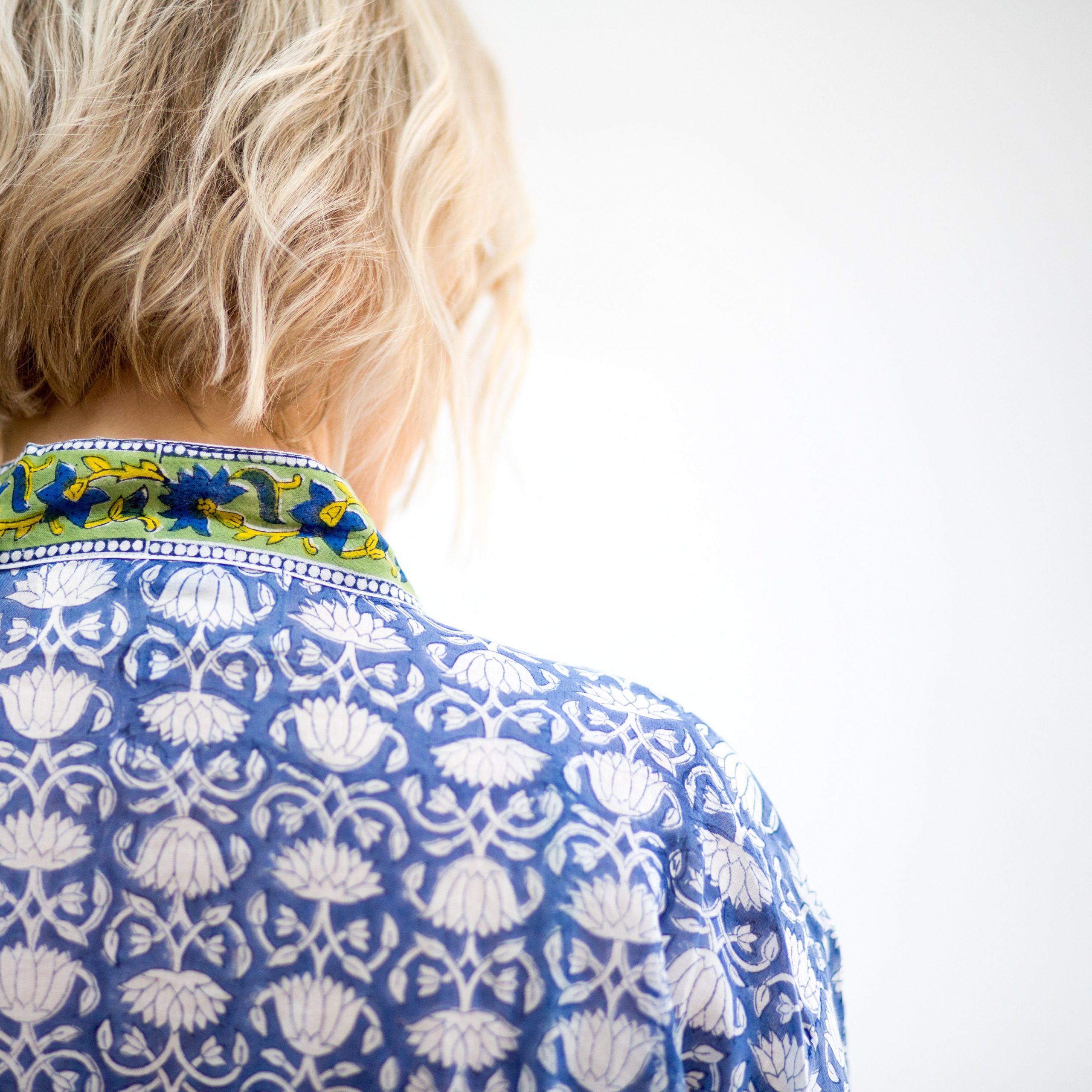 Made in Jaipur, India, from 100 percent cotton, using the traditional method of block printing that gives each piece a unique appearance.